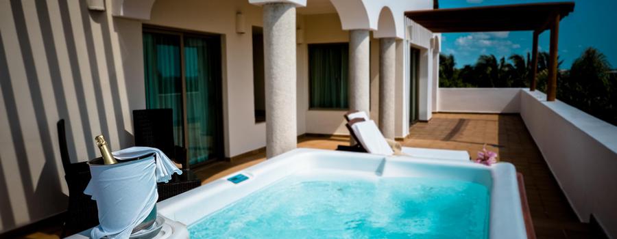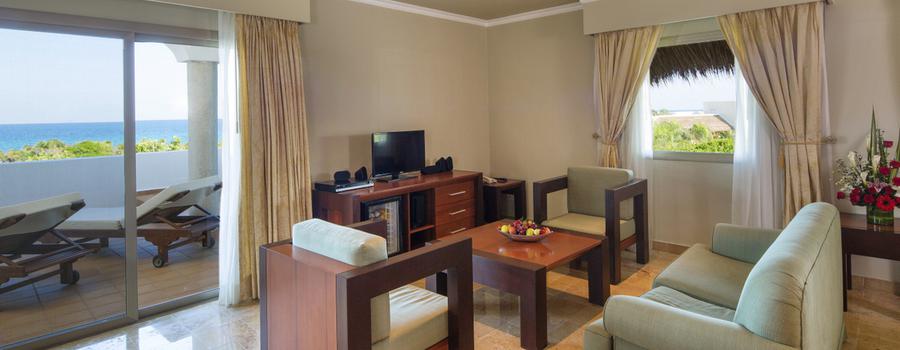 Fabulous 1032-square-foot Imperial Privilege Suites with a terrace, PRIVILEGE service, separate living room and the best views of the resort. They are perfect for those guests looking for comfort, spaciousness, a romantic and luxury ambiance and a personalized service of the highest quality. All of them have different locations in the resort, with the best views. Two bathrooms, an indoor Jacuzzi and a spa Jacuzzi in the outdoor terrace. King Size bed. They are perfect for couples, families or groups of friends. Enjoy paradise and the luxury magic of the Caribbean.
